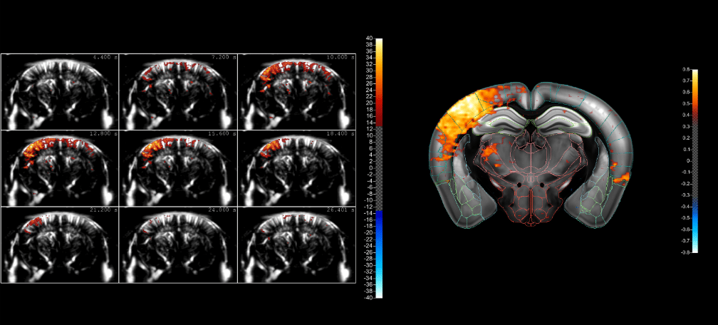 So by monitoring the blood flows in these vessels using fUS, we can infer the activation of certain brain regions. This allows us to see the effect of sensory stimulation, or probe the functional connectivity between brain regions, and even gain insights into disease mechanisms. And what’s more, using Iconeus One, this can be done in real time!